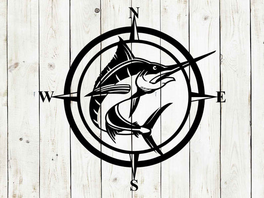 Marlin with Compass Decorative Metal Sign, Metal Art, Metal Sign,, Summer, Spring, Beach Sign, Beach House, Deep Sea, Marlin