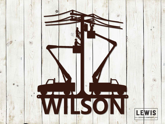 Linemen and Trucks Custom Name Metal Sign - Garage Decor, Shop Decor, House Decor, Lineman Gift, Metal Sign, Tradesperson, Lineworker