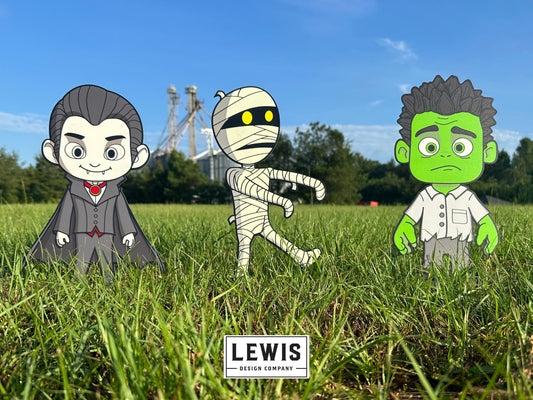 Little Halloween Monsters Metal Yard Stakes, Halloween Decor, Halloween Yard Decoration, Vampire, Mummy, and Monster