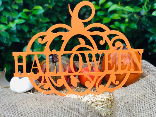 Halloween Pumpkin Metal Sign, Door Hanger, Halloween, Fall Decor, Custom Metal Art, Metal Signs, Home Decor, Gift Ideas, Holiday