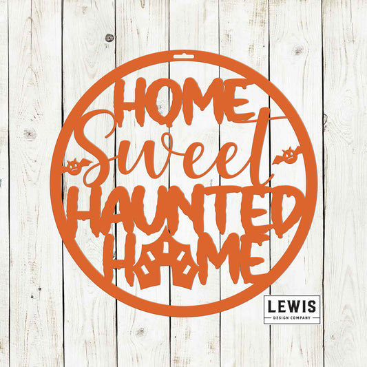 Home Sweet Haunted Home Metal Halloween Door Hanger, Halloween Decor, Fall Wreath, Haunted House Sign, Metal Art, Halloween Decoration