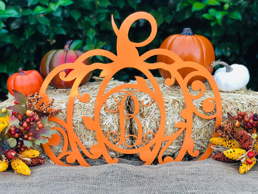 Monogram Letter Pumpkin Metal Sign, Pumpkin Door Hanger, Fall Door Hanger, Fall Wreath, Custom Fall Decor, Fall Decor