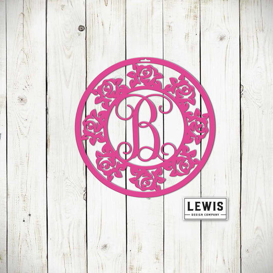 Rose Monogram Custom Metal Wreath, Monogram Front Door Hanger, Monogram Door Hanger, Door Wreath, Porch, Metal Door Hanger