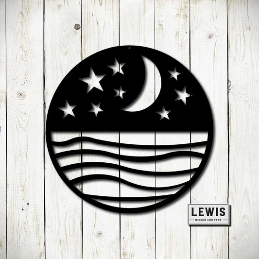 Moon, Stars, and Waves Metal Wall Art, Beach Wall Art, Beach House, Lake House, Moon and Stars Decor, Wall Decor