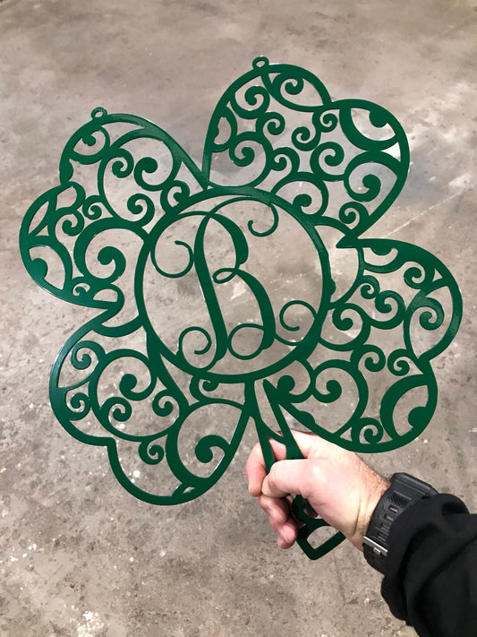 Monogram Shamrock, Four Leaf Clover, Shamrock Door Hanger, Shamrock, St Patrick's Day Decor, Irish, March Decor, Spring Wreath, Four Leaf Clover, Metal Signs