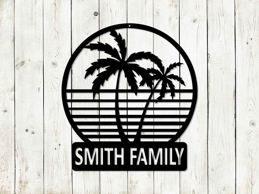 Palm Tree Monogram Design, Custom Sign, Monogram Sign, Beach Sign, Beach House Sign, Fathers Day, Mothers Day, Retro Beach
