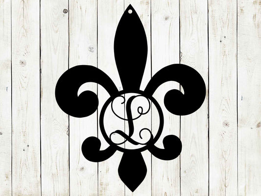 Fleur De Lis Monogram Door Hanger, Door Hanger, Metal Art, Metal Sign, Monogram Door Hanger, Home Decor, Mothers Day Gift, Door Decor