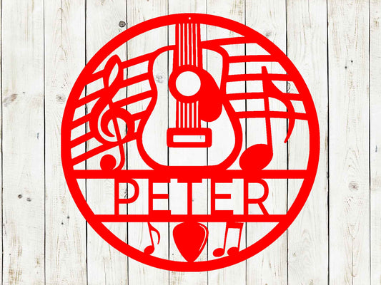 Guitar Music Note Custom Circle Metal Sign, Guitar Player, Guitar Sign, Guitar Teacher, Music, Music Teacher, Band Room, Guitar Player