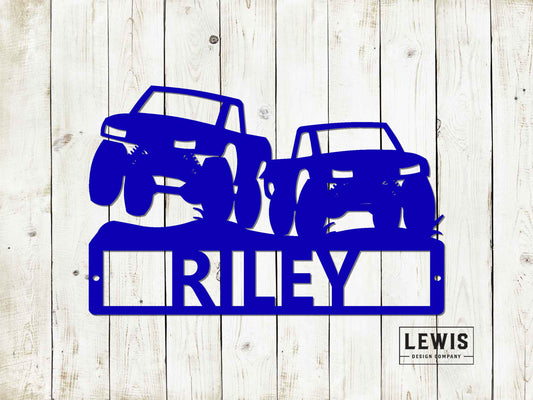 Racing Trucks Custom Name Metal Sign - Kids Room Decor, House Decor, Kids Gift, Metal Sign, Truck Gift, Race Truck, Truck Sign