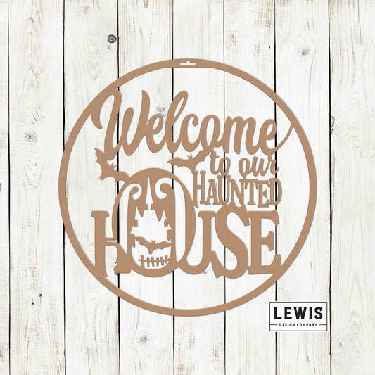 Welcome to Our Haunted House Metal Halloween Door Hanger, Halloween Decor, Fall Wreath, Haunted House Sign, Metal Art, Halloween Decoration