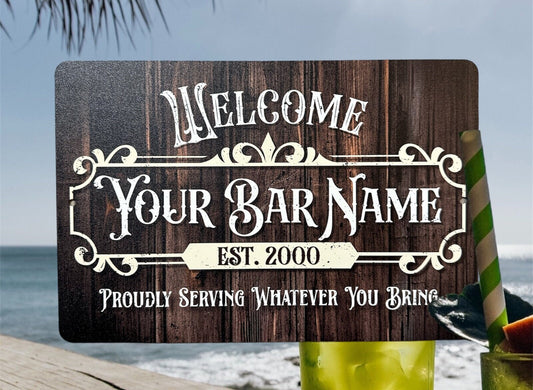 Custom Bar Sign, Custom Metal Powder Coated & Printed Name Sign