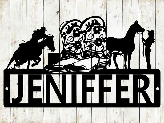 Cowgirl Custom Name Metal Sign, Custom Sign, Rodeo, Equestrian, Boots, Farm Sign, Horse Sign, Cowboy, Cowgirl, Farmhouse, Barrel Racing