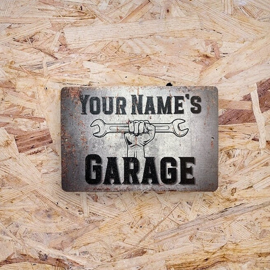 Custom Rusty Garage Sign, Custom Metal Powder Coated & Printed Name Sign