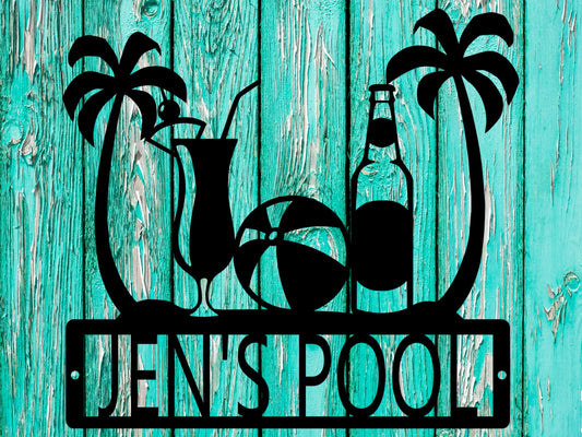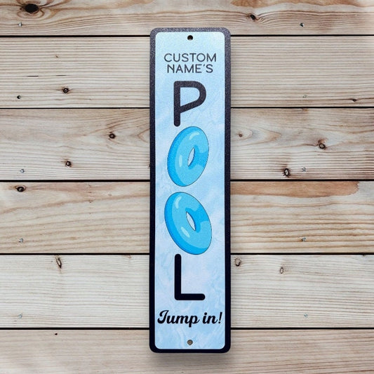 Custom Pool Sign, Custom Metal Powder Coated & Printed Name Sign