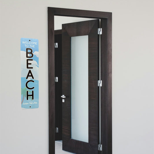 Custom Printed Welcome to the Beach Sign, Custom Metal Powder Coated & Printed Name Sign