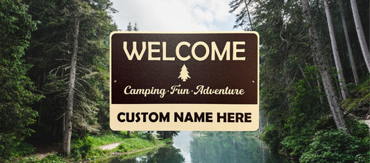 Custom Printed Welcome Camping Sign, Custom Metal Powder Coated & Printed Name Sign