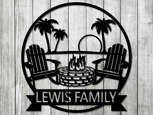 Custom Name Sign With Beach Campfire Design, Custom Sign, Monogram Sign, Wedding Gift, Beach Sign, Beach House Sign, Beach Sign, Fathers Day