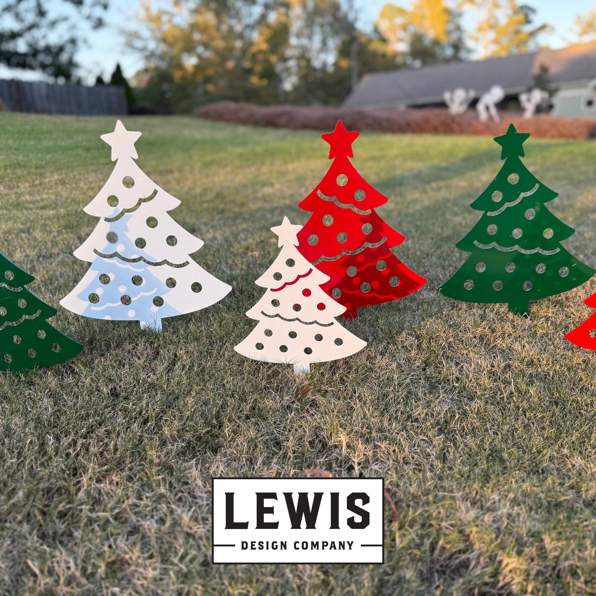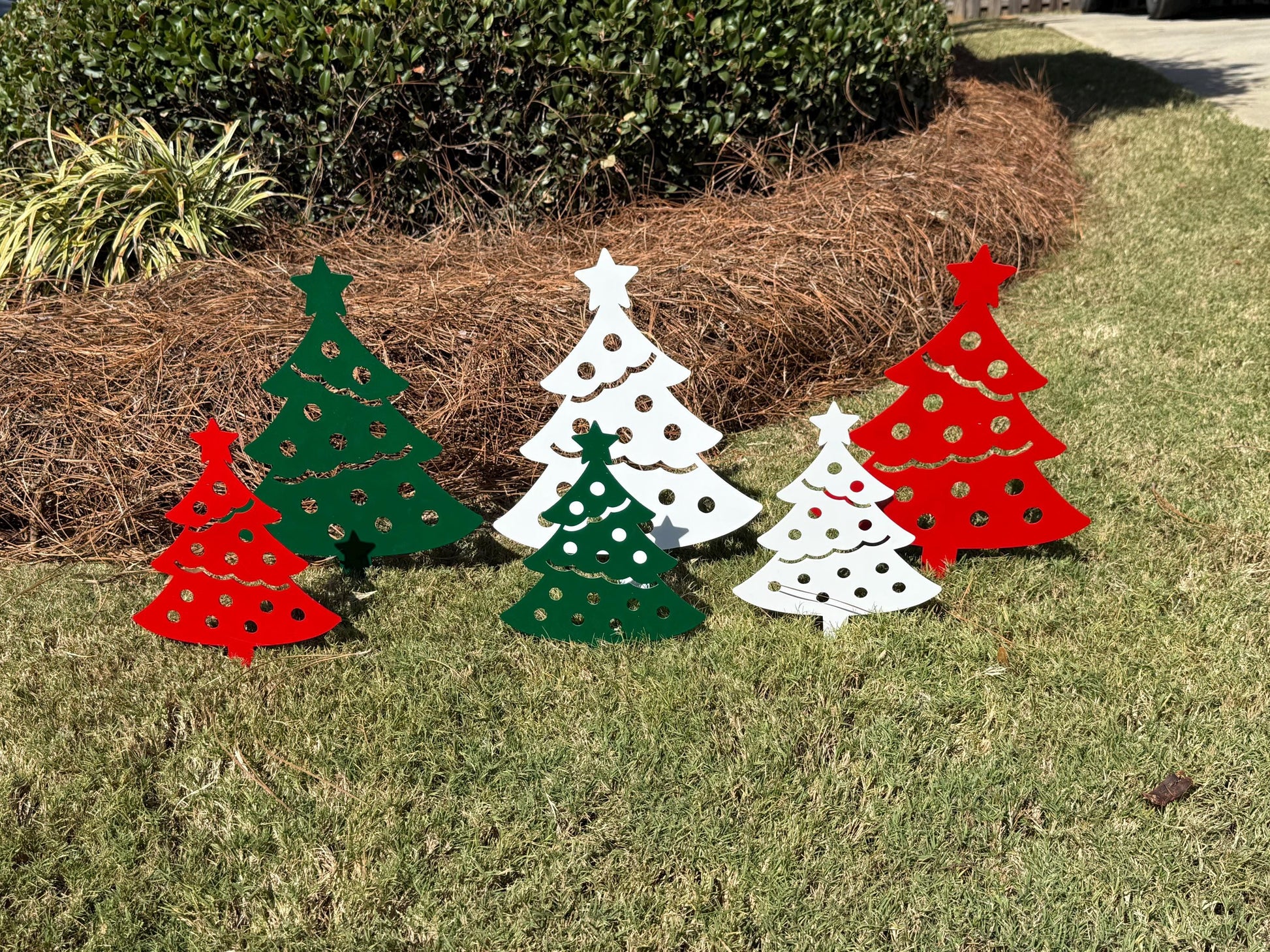 Each stake features a beautifully detailed Christmas tree silhouette — perfect for front yards, gardens, walkways, or driveways. Easy to install with the attached stake for quick placement in the ground.