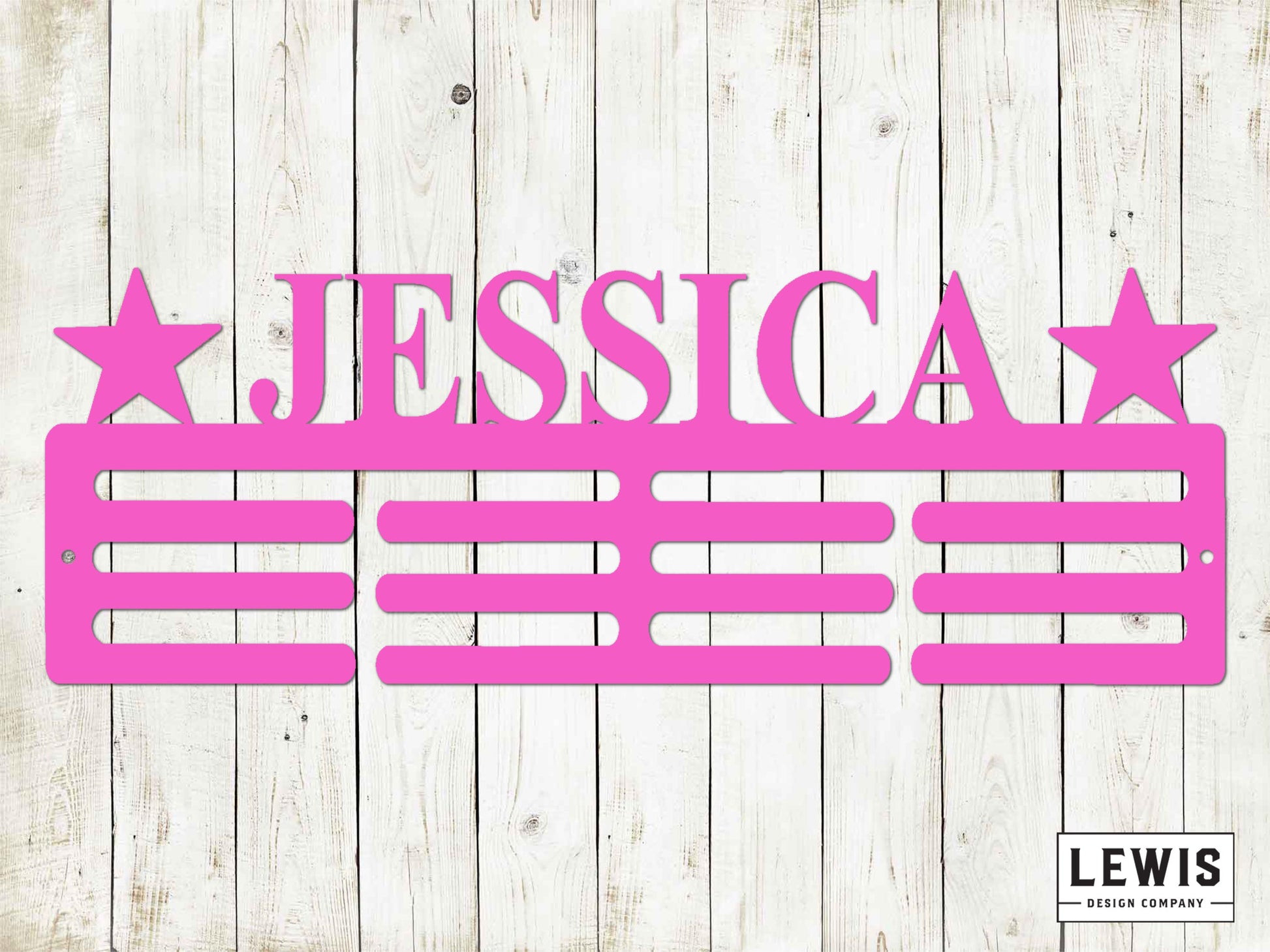 Custom Name Medal Hanger with Stars - 12 Rungs for medals & Ribbons, Medal Display, Sports Medals, Kids Room, Kids Room Sports Decor
