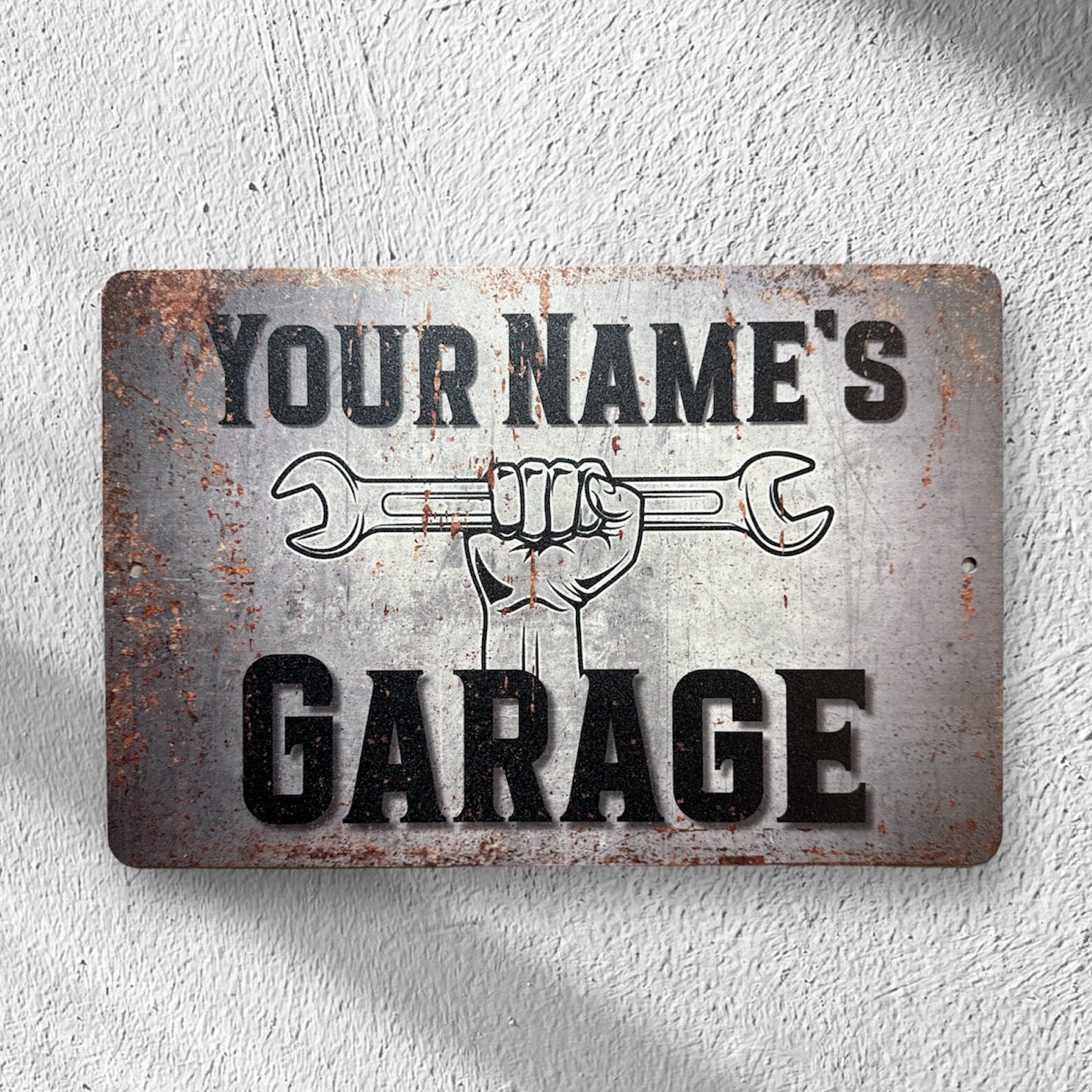Give your garage a little personalization! This sign works for both business establishments and home areas. This custom name sign is perfect for your garage or workshop area and also makes a great gift for friends or family!