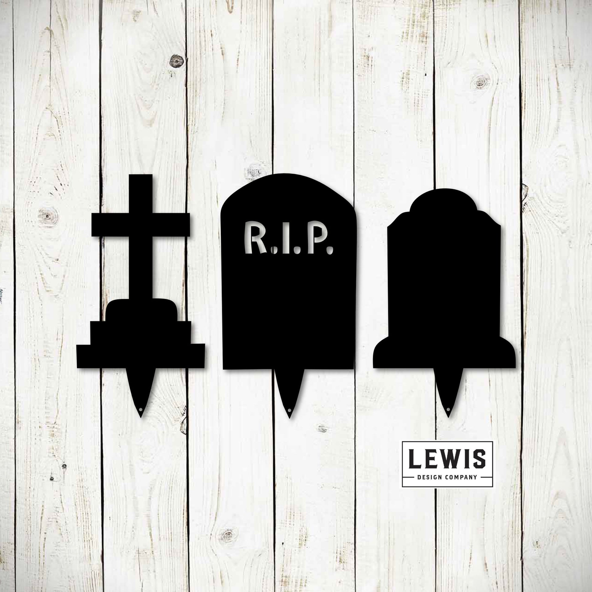 Set of 3 Halloween Tombstones Metal Yard Decorations