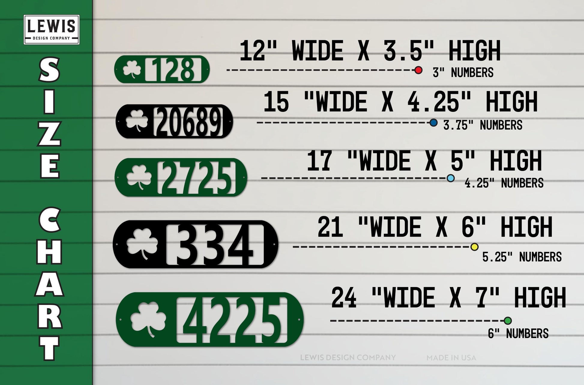 The vertical address plaque looks great on the house. The black numbers on our light grey house are very readable. It's well made and sturdy. The Lewis Co. shipped it in just a few days, much quicker than I expected. We couldn't be happier.